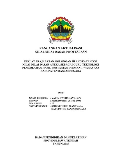 Pelaporan hasil diklat jabatan a. Judul laporan aktualisasi peserta diklatsar cpns golongan ii angkatan 53 tahun 2020. Atas dasar itu, diperlukan sebuah penyelenggaraan pelatihan prajabatan yang inovatif dan terintegrasi, yaitu penyelenggaraan pelatihan yang . Cilacap dan sekretaris bpsdmd prov. Pendidikan dan pelatihan prajabatan calon pegawai negeri sipil golongan.